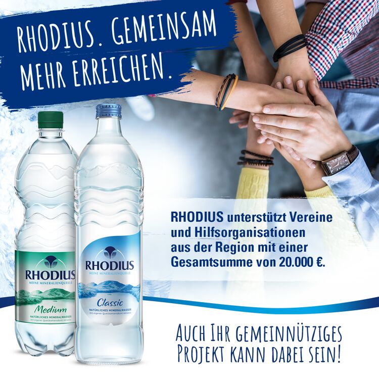 In der zweiten Phase geht es dann an die Abstimmung. Diese beginnt am 04. Oktober 2021 und endet am 17. Dezember 2021. Denn nicht RHODIUS oder eine Jury entscheiden, wer gewinnt. Nein – die Kund:innen entscheiden, wer wie hoch unterstützt wird! Wie das geht? Ganz einfach: Mit dem Kauf der Aktionsware RHODIUS Mineralwasser in den Sorten Classic, Medium und Naturelle (12 x 1,0 L PET und 12 x 0,75 L Glas) erhalten Kund:innen im Zeitraum September bis November pro Flasche einen Code. Dieser Code zählt als eine Stimme, die auf der Plattform an das jeweilige Wunschprojekt vergeben werden kann. Die Projekte mit den meisten Stimmen erhalten die höchste Unterstützung, wobei insgesamt die ersten 25 Projekte unterstützt werden.